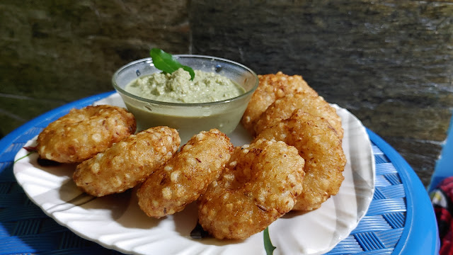 6) आता तेल गरम करुन मध्यम आचेवर वडे तळून घ्यायचे आहेत. कढईत जास्त गर्दी होणार नाही याची काळजी घ्या, जेणेकरून वडे फुटणार नाहीत. छान सोनेरी छटा येईपर्यंत तळून घ्यायचे आहेत. छान असे वडे तळून झाल्यावर चटणी सोबत खायला खूप छान लागतात.